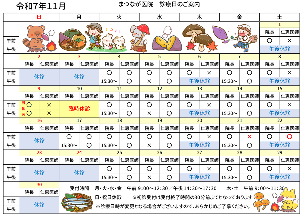 ホーム > 新着情報一覧 > 11月診療日のご案内